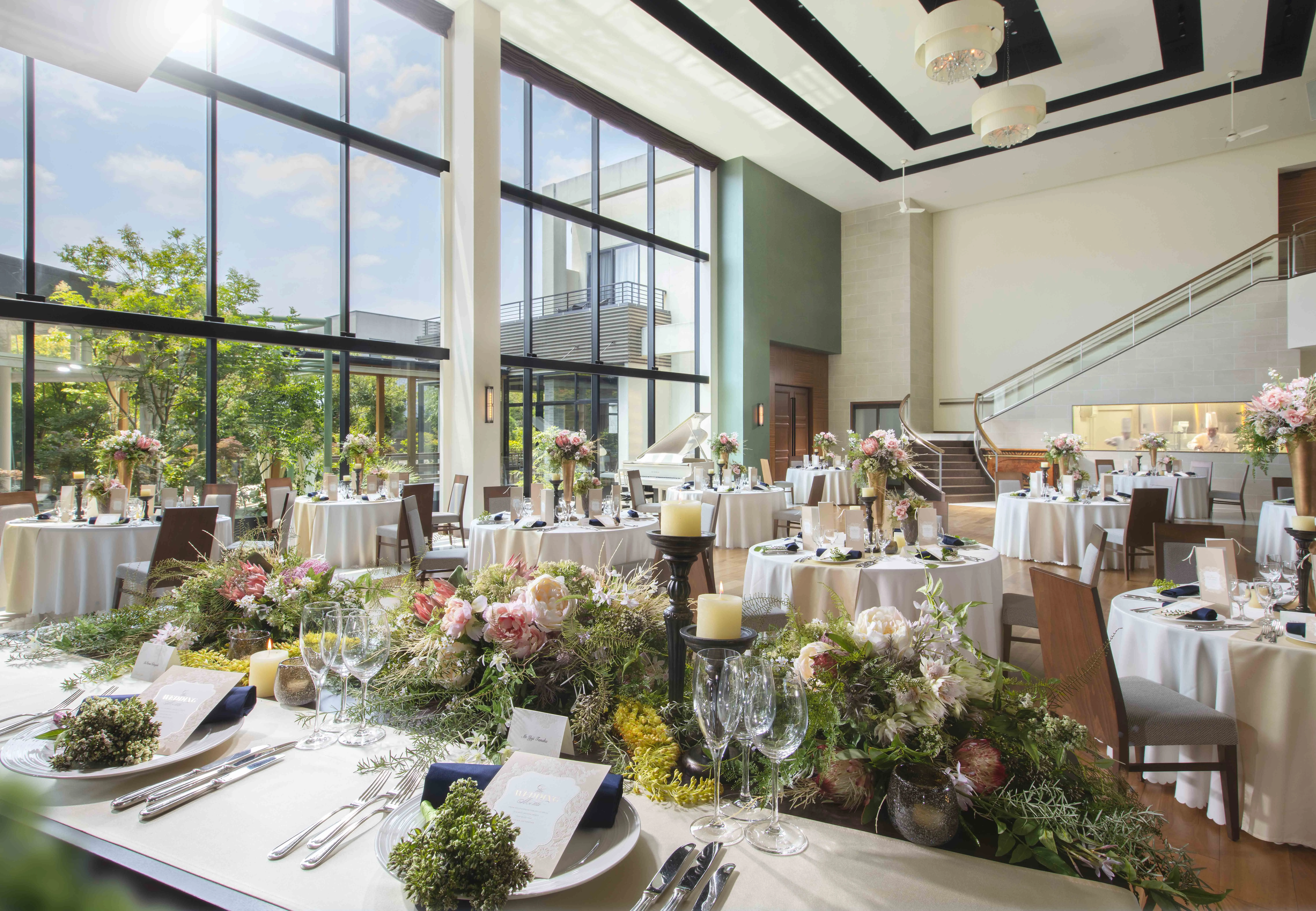 すべての会場はガーデンへと繋がり、あたたかな自然光、美しい景色の中でゆったりとお過ごしいただけます。